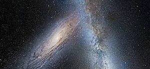 10.随着银河系与仙女星系在40亿年后融合,夜空的景象也将随之变化。这是大约20亿年后的样子: