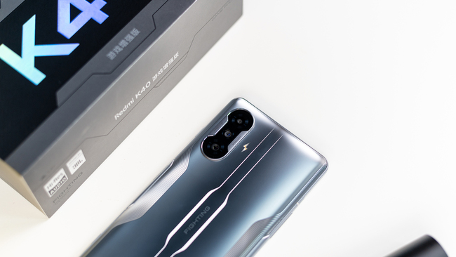 Redmi K40游戏增强版提供暗影、银翼、光刃三种配色,整机设计相对内敛的同时背部用机甲纹理配合镜头部分弧形呼吸灯带和闪电形闪光灯增强了电竞氛围,手机正反面都被第5代康宁大猩猩玻璃覆盖,配合弧线过渡金属中框,机身厚度8.3mm,重量205g,身形在游戏手机中属于相对轻薄的。