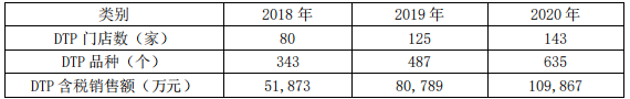 截至报告期末,2020年老百姓DTP药店达143家,销售DTP品种635个,销售额(含税)10.99亿元。此外,公司院边店占比10.89%,特殊门诊资质药店396家,处方药和DTP的销售占比达45.20%。