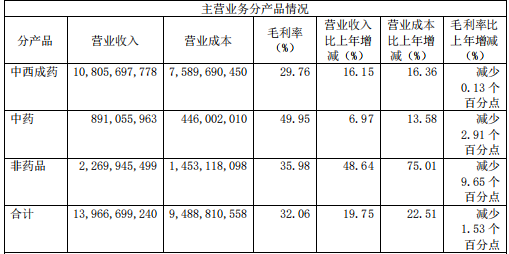 从品类来看,中西成药销售占比约77%,是老百姓最主要的商品品类,营业收入比上年同期增长16.15%。