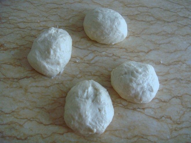 6、发酵结束拿出排气滚圆分成4个均匀的胚子,盖上保鲜膜静置15分钟