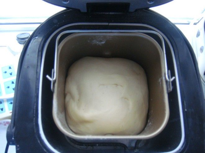 3、倒入面粉中间埋入酵母后启动和面程序20分钟