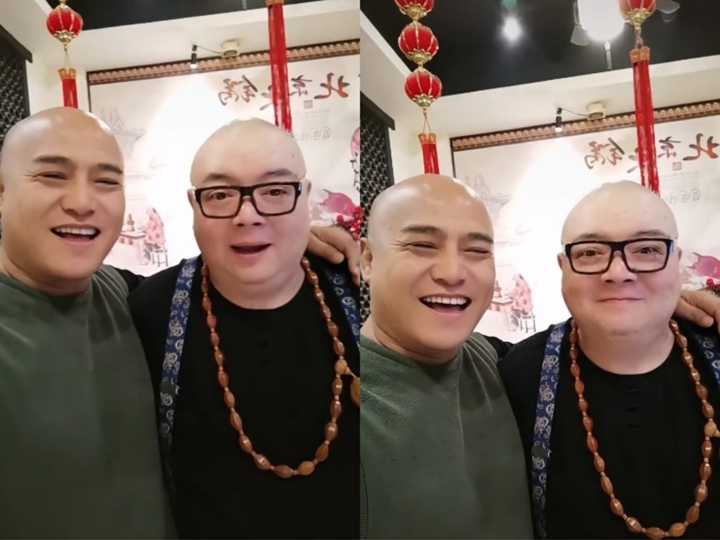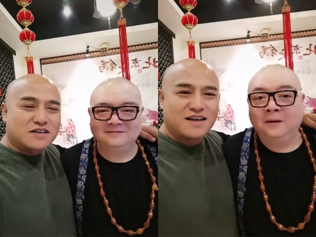 近日,演员黑子晒出和谢宁的同框视频,并称谢宁为“猪哥”,两人发型都锃光瓦亮,引人注目。