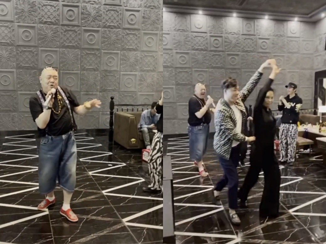 作为生日的主角,谢宁当然不只是出现在黑子的动态里,他还自己发了一个聚会唱歌的视频。视频中黑子并没有出镜,谢宁拿着麦克风唱得投入,身体也跟着音乐扭动。唱到嗨处,谢宁的一众中年老友也纷纷出镜,手牵手热舞。
