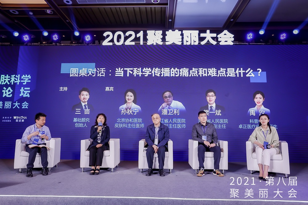 非常感谢今天有机会跟几位专家来请教,其实我本人也一直在做美妆护肤方面的科普工作。这几年随着物质消费升级,大众的消费越来越理性。特别受疫情影响,我们在各个平台上可以看到很多专家身影,在面对皮肤问题、选购相关护肤产品时,医生的专业意见也成为用户的重要信息参考之一。但是,现在网络上声音繁杂,科学传播会遇到一些阻碍和困难,这也是我们今天讨论的第一个环节。