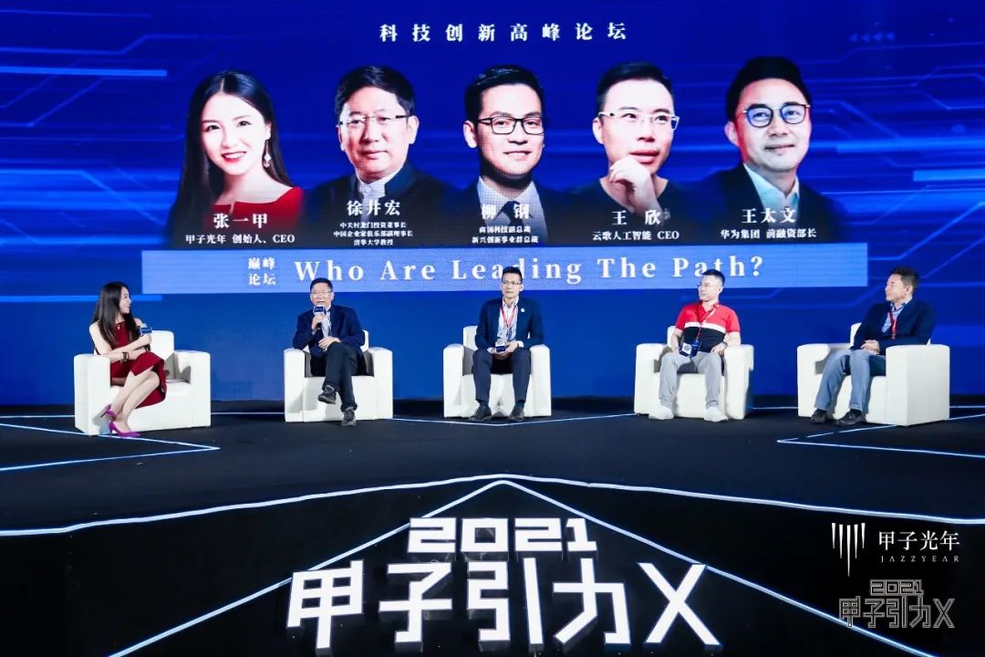 在当日上午举行的产业篇“巅峰对话”环节,中关村龙门投资董事长、中国企业家俱乐部副理事长、清华大学教授徐井宏与商汤科技副总裁、新兴创新事业群总裁柳钢,云歌人工智能CEO王欣,华为集团前融资部长王太文就“Who Are Leading The Path?”展开对话。「甲子光年」创始人兼CEO张一甲做对话主持。