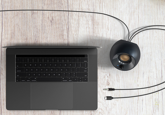 而传统手机、笔记本的外放喇叭过于迷你,声音往往干瘪不自然,昂贵的音响设备虽然可以发出音色极佳的声音,但是价格过高以及体积太大也不适合摆放在电脑前。为了解决这个难题,创新科技为我们带来了全新的PEBBLE V2桌面音箱。