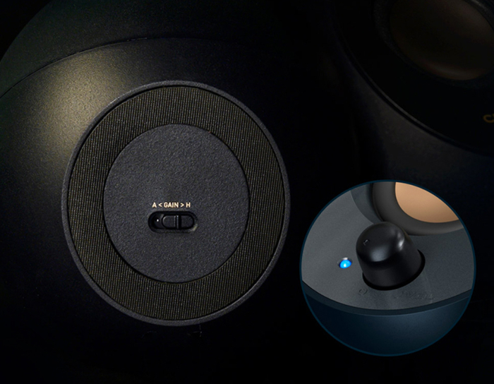 为了摆脱桌面级音箱的播放角度与人耳不在一个直线上的问题,PEBBLE V2创新地采用了45°的倾斜设计,让播放单元与桌面呈45°的夹角,保证了用户时刻处于最佳的听音位置,减少了音频细节的损失。