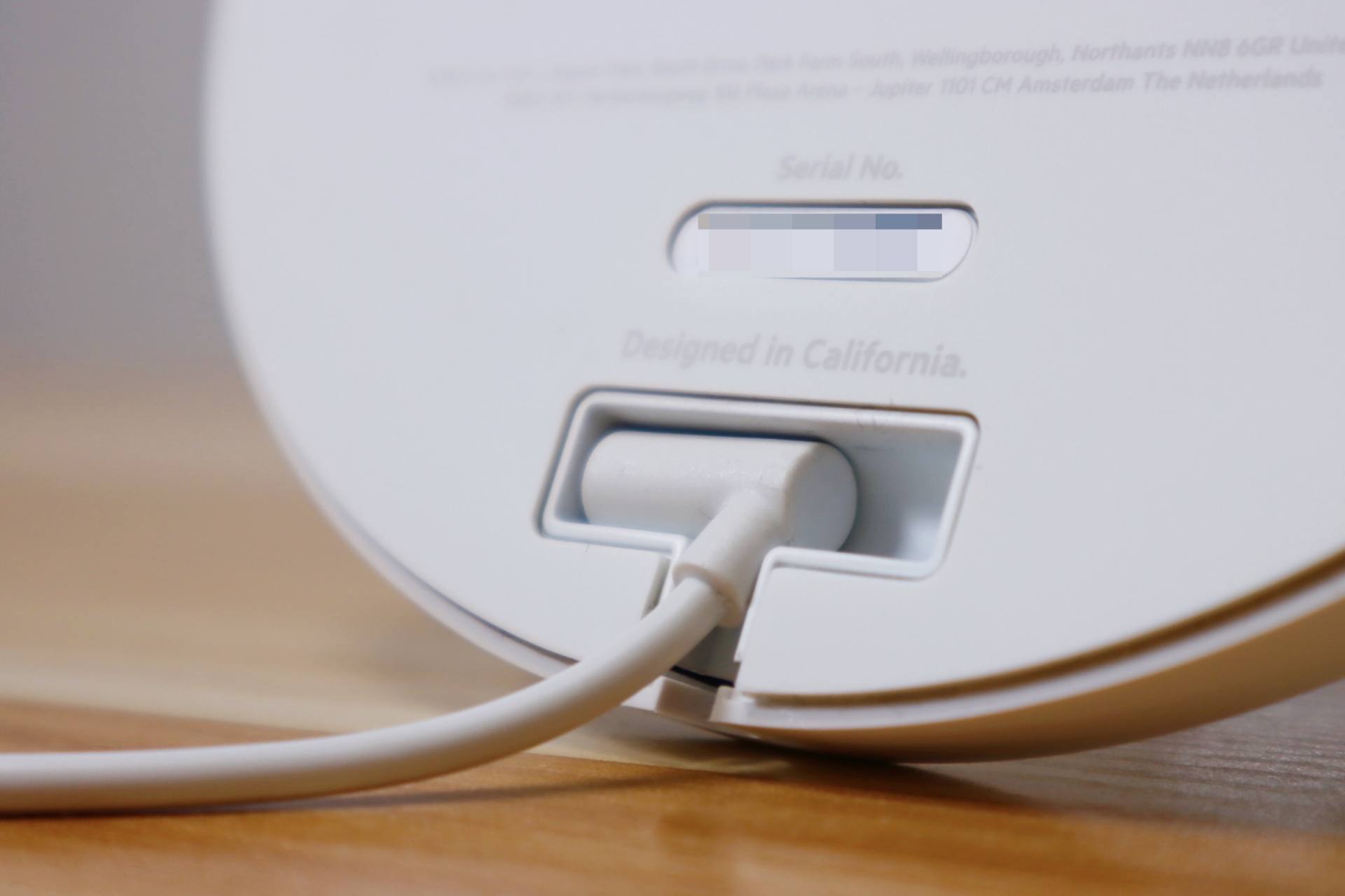 查看底座的背面,你除了能够看到一整片的防滑胶垫外,还有一个T型的凹槽,让标配电源适配器的直角DC圆头,在插入进行供电时能够与底座形成一个平面,同时让插头可以更好的固定没,有效避免使用过程中不必要的拉扯对线材的损坏。