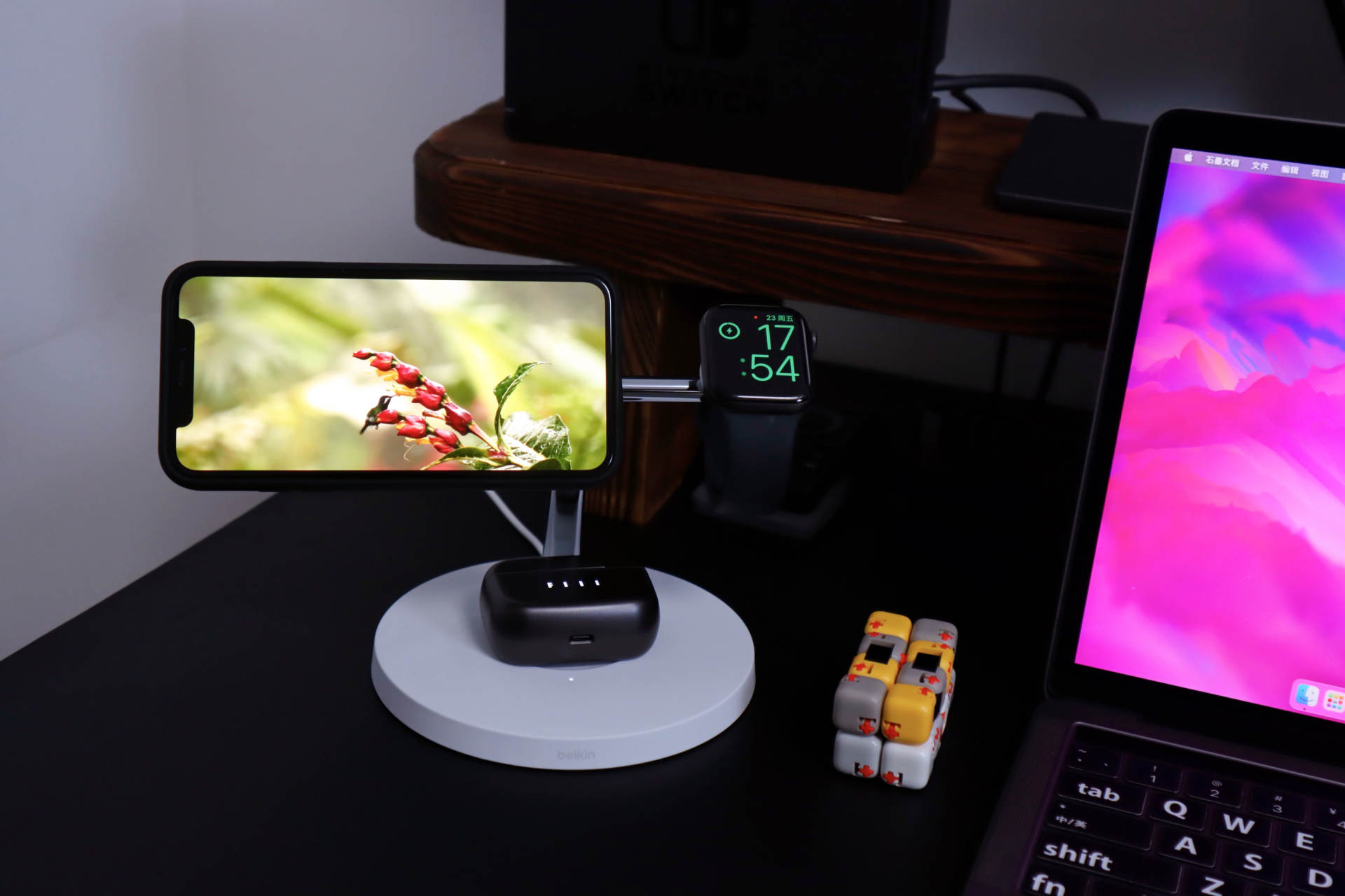 那么得益于贝尔金三合一无线充作为首款Made For MagSafe认证的充电产品,对于使用iPhone 12的用户来说,不仅能够获得手机悬空的磁吸充电体验,还能够获得15W的无限充电功率,让你拥有区别于旁人的充电体验。