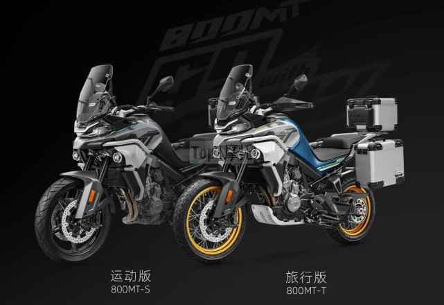 看样子春风800MT应该只有两种颜色了,运动版是灰色+黑色搭配,旅行版是蓝色+银灰色搭配,而且轮圈是金色的。