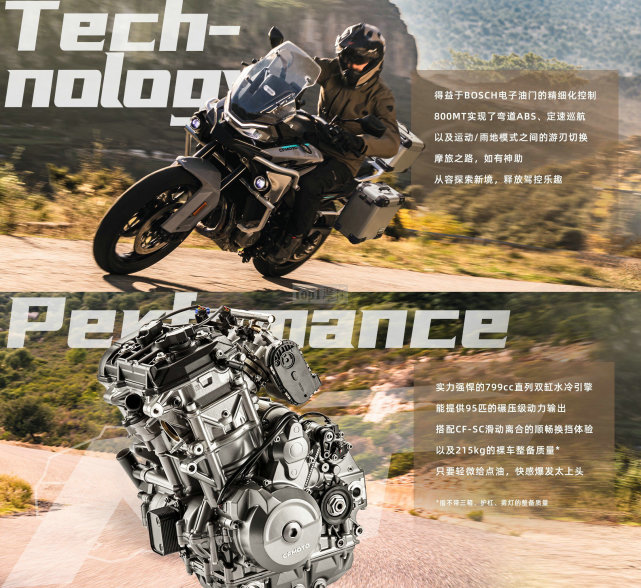 电子油门由博世调校,搭配博世的弯道ABS,操控起来更加得心应手,还提供多种驾驶模式,定速巡航功能,这些都是目前国产车型上的稀缺配置;799cc的直列双缸发动机,最大马力达到95Ps,最大扭矩77Nm,这组数据即便对上国际上的同级产品也丝毫不虚。
