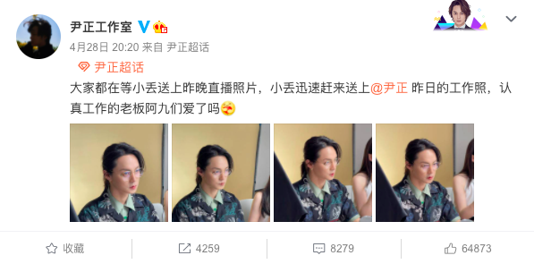 前几天,尹正工作室晒出了这样的一组照片。