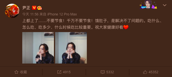 这回尹正因为减肥上热搜后,他提醒大家第一个事情就是:不要节食减肥。