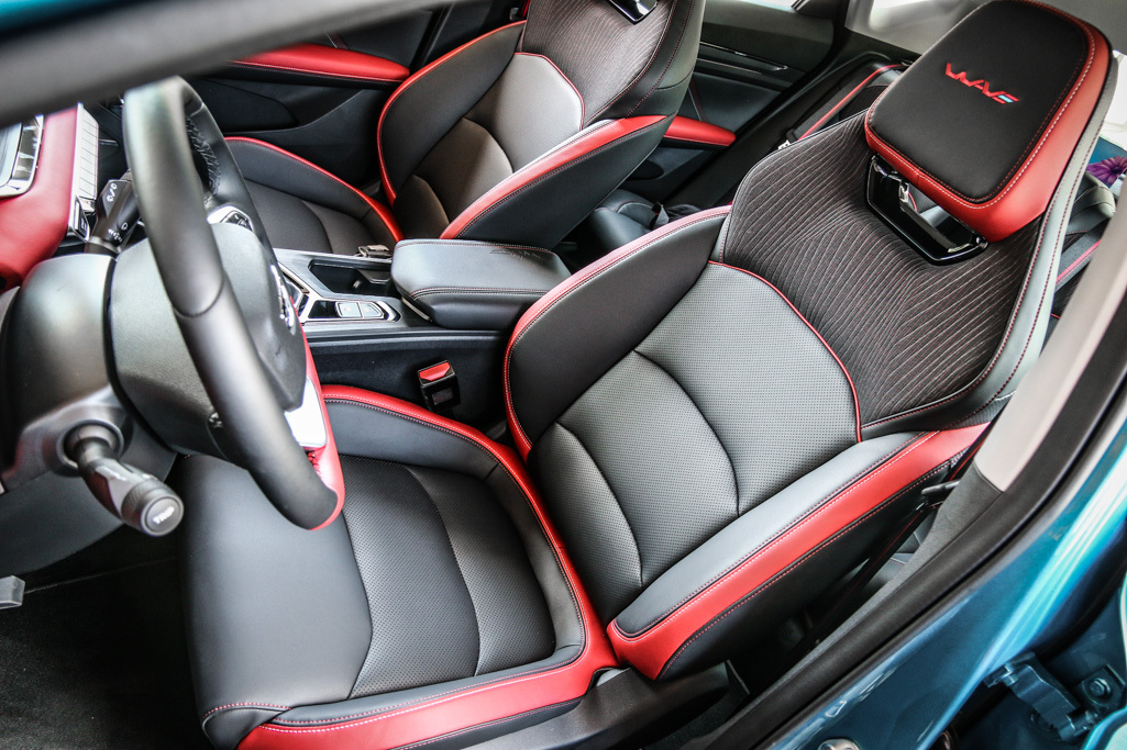 外观上的运动化是用来吸引路人眼光而用,那么内部的运动化则是为了让驾驶者悦己而用。黑红色的内饰配色布满了中控区、门以及座椅,就像黑色轮毂和红色卡钳般的组合一样。而在你手和手肘能触及绝大多数地方都采用了皮质覆盖,而且装配工艺也很不错。