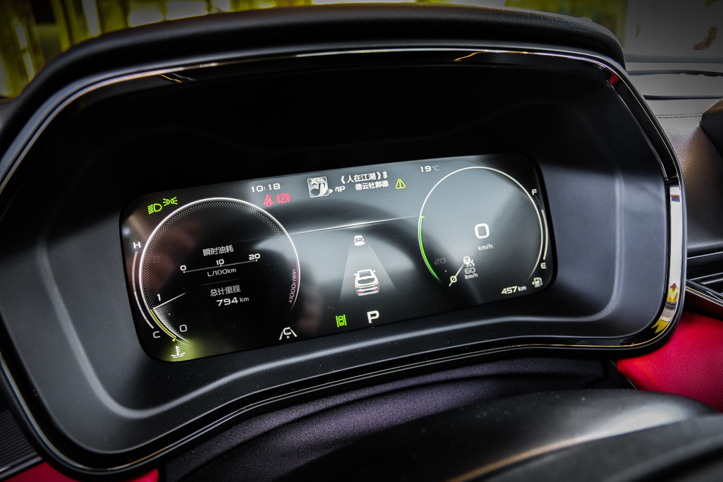 也许相比于时下动不动就12.5英寸的液晶仪表盘而言,帝豪S这个10.25英寸的仪表盘完全够用,无论是清晰度还是像素都很高。在模式上有Eco、Normal以及Sport可以选择,而且可以通过三指飞屏将中控屏上的导航信息投射到仪表盘上,且不影响中控屏的其他功能操作。