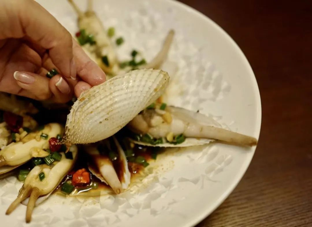 一家做宁波小海鲜的宝藏店“隐秀轩海鲜餐厅”里,我生平第一次吃到“沙蛏”,浑壳玉白色,类似河豚受惊时的细刺。