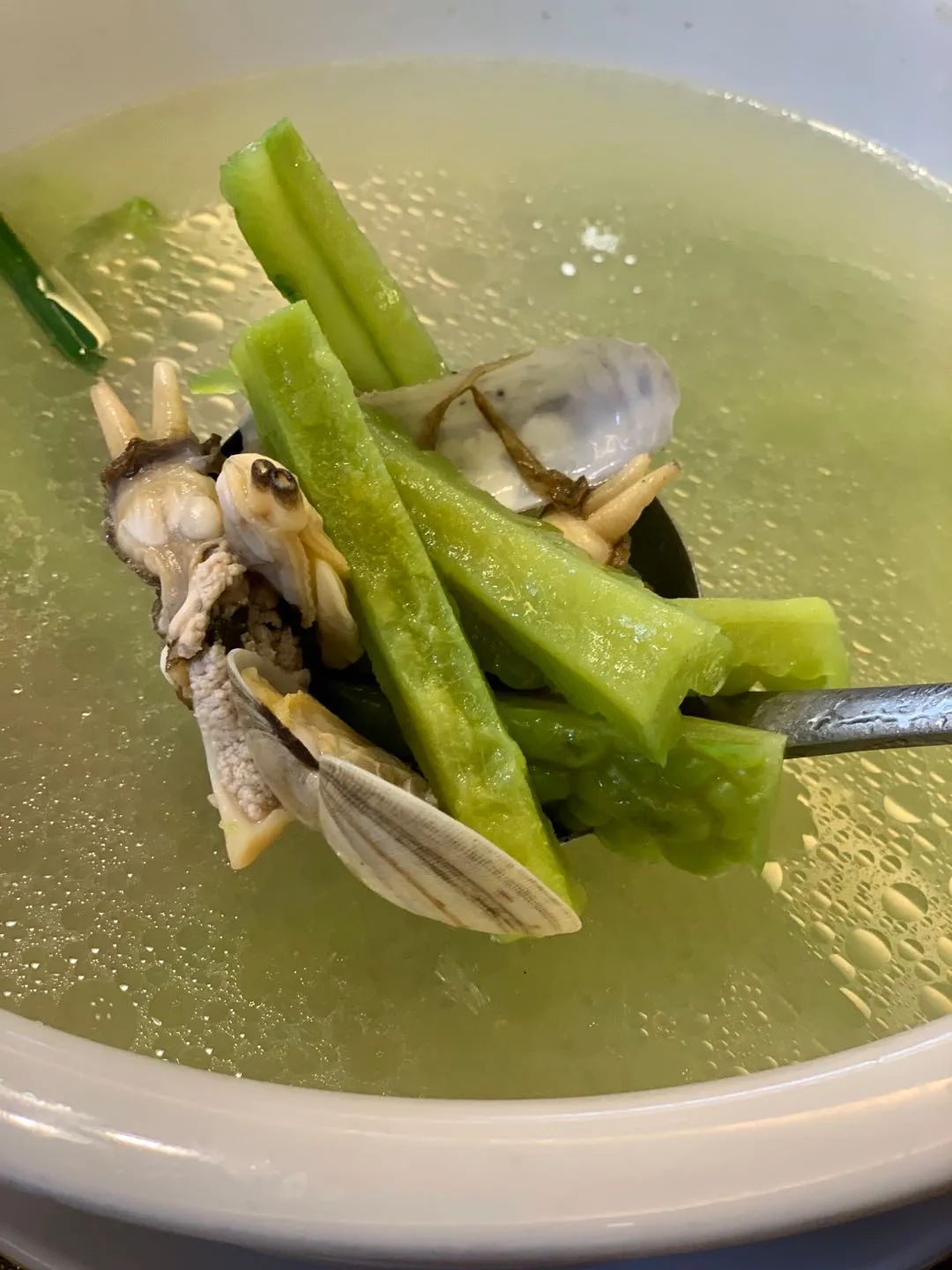 看着蛏子一次次美人出浴,一道鲜美入魂的闽式苦瓜汤出落得清清净净。我对蛏子维持二十年的生理性拒绝也一步步溃败,最终在餐桌上无底线治好了。美的东西真坏,总是让人软弱。