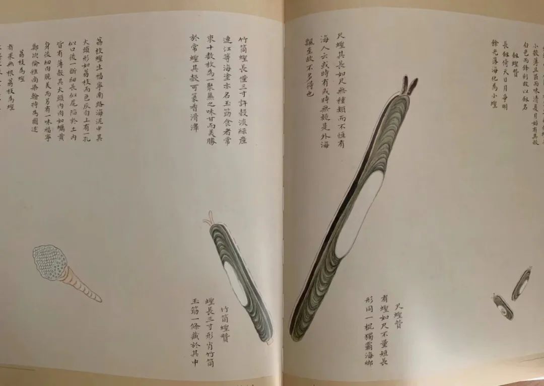 聂璜的“荔枝蛏”明显是鹅颈藤壶与蛏子的杂糅体,还不如这眼前的沙蛏的姿色能达意。聂璜是真敢写啊!《竹筒蛏赞》里赫然一句“蛏长三寸形肖竹筒,玉筋一条藏于其中”,辣眼睛!