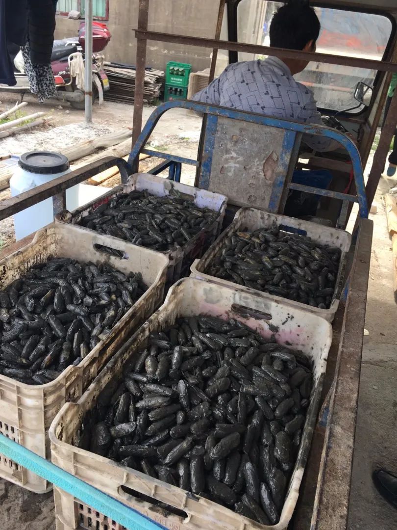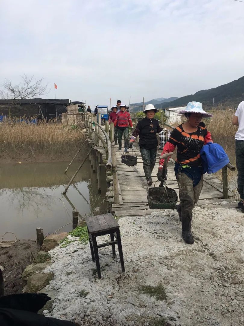 有力气的中年妇女一般充当短途运输工作,把壳子完整的肥蛏子挑好,放到车上,好运到市场上售卖。