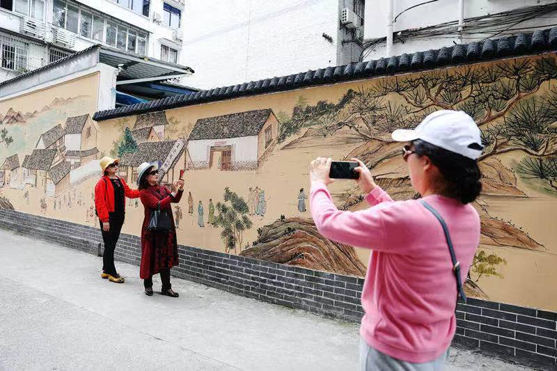 这面3D文化墙将宜宾的历史故事娓娓道来:生动的酿酒场景,热闹的街市,优美的江边风景,立体的城市老照片……其中一面壁画长约百米,借鉴了《清明上河图》的形式,鲜活地展示了川南生活场景,让原本不起眼的小街巷一改陈旧的面貌,成为市民们的“打卡地”。