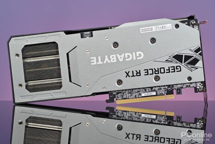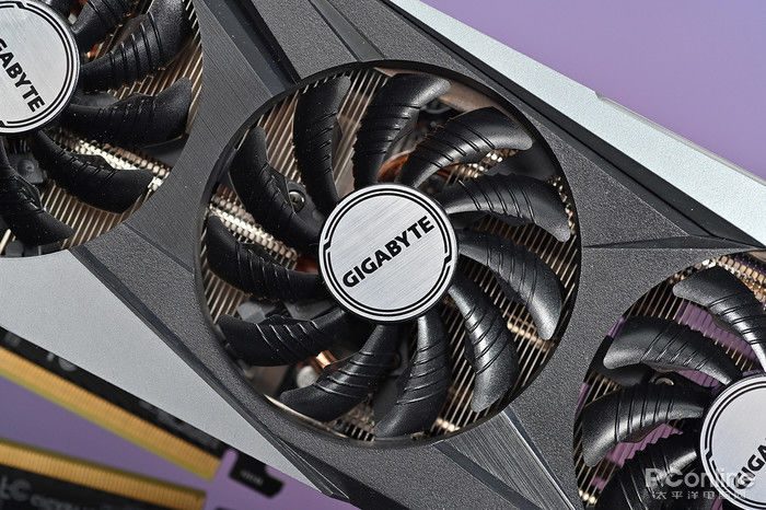 显卡正面搭载了三个80mm的刀刃式风扇,并采用了特殊的刀刃式设计,透过扇叶的边缘三角立体造型以及扇叶叶面的导流沟槽,能够提供更强的进风量,并且还支持正逆转功能以及风扇智能启停功能。
