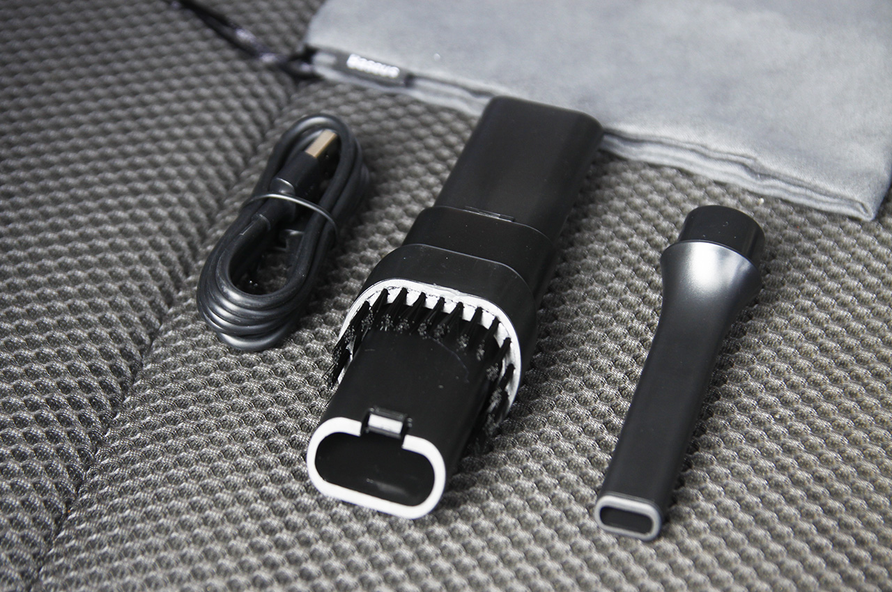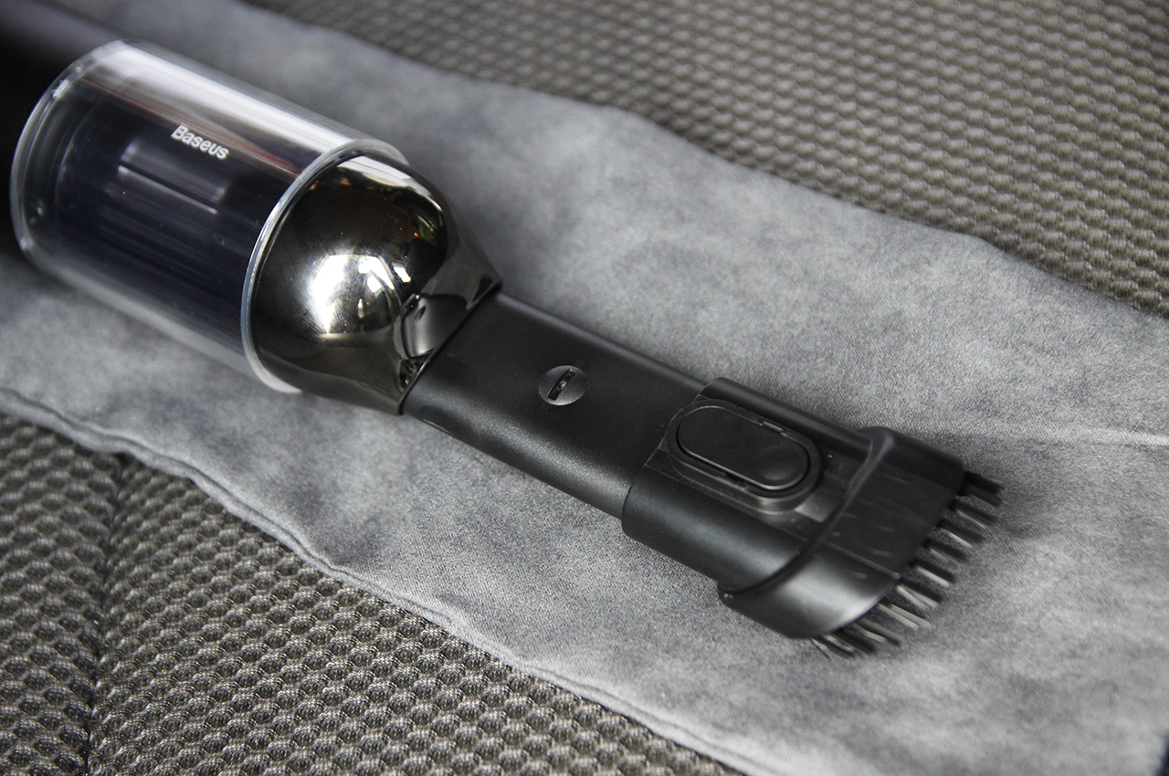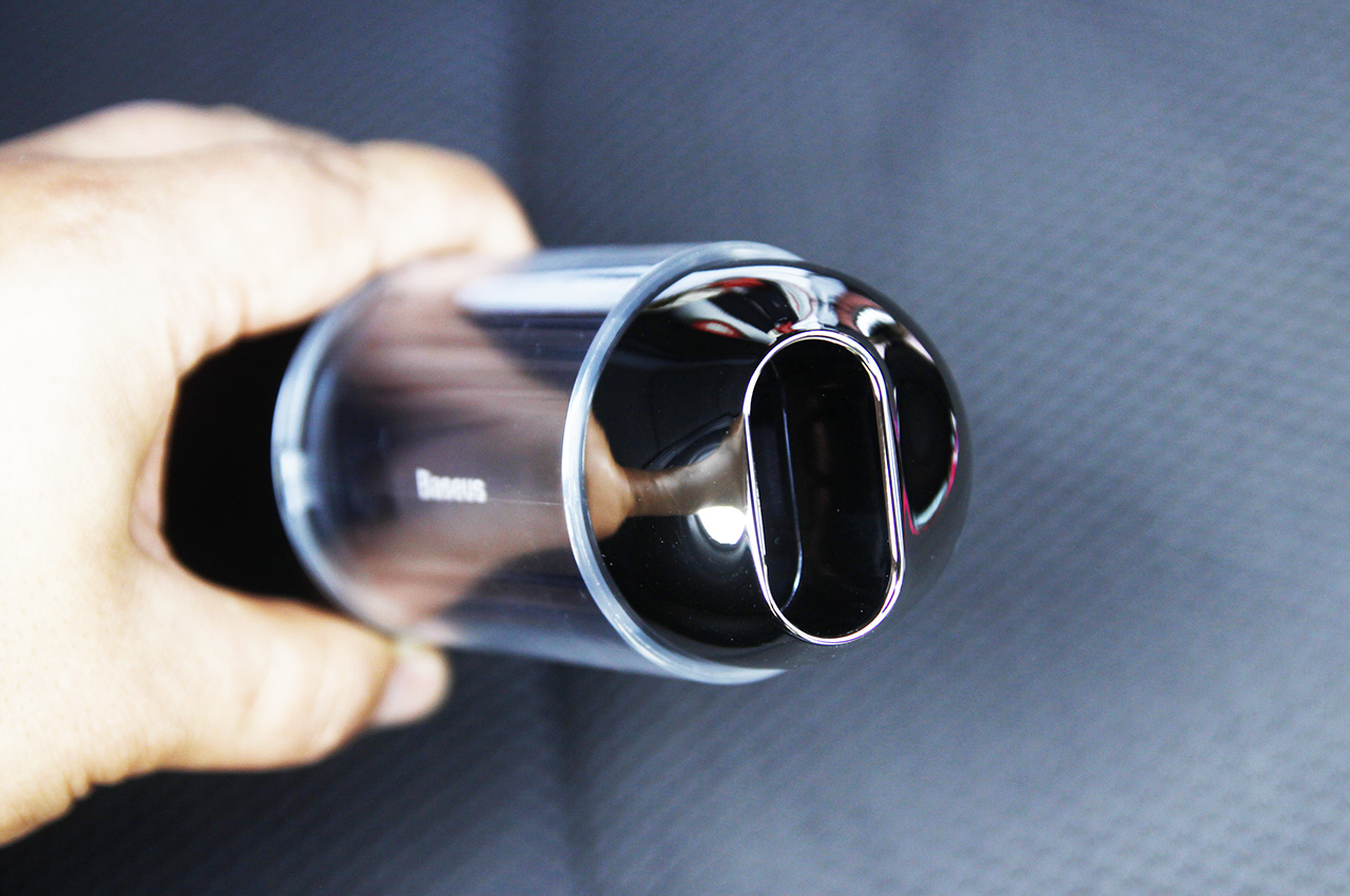 之前买过一个车载吸尘器,身形虽然不算庞大,但和倍思A3一比就没法看了,还要插根长长的电线使用,好在当时还买了220V电源,扔家里当家用吸尘器吧。