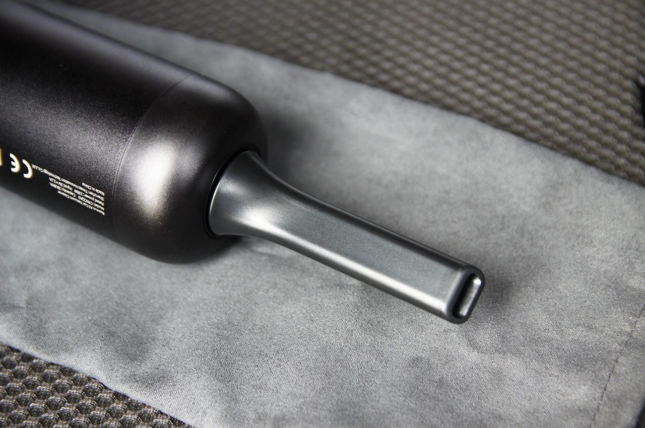 下图是加长吹嘴的安装方式,安装在尾部的出风口,这就是前面提到的彩蛋。狭长而又细小的吹嘴力道可是很大的。