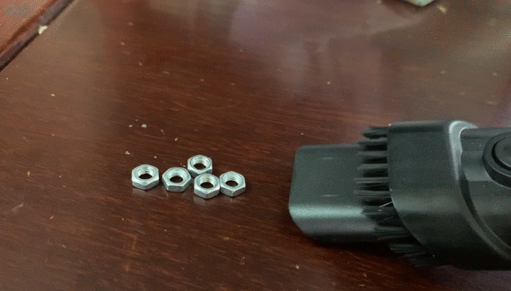 至于说倍思A3最大吸力是啥水平,我们准备了几个螺丝帽……看效果还不错吧,这么小的身形这种吸力非常难得。