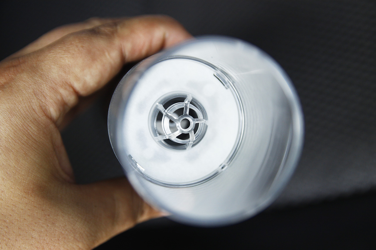 内部特写,透明装饰罩内部就是离心式叶轮的吸风口,倍思A3吸尘器的最大吸力达到了15000Pa,如此大的风量叶轮转速肯定是五位数的。