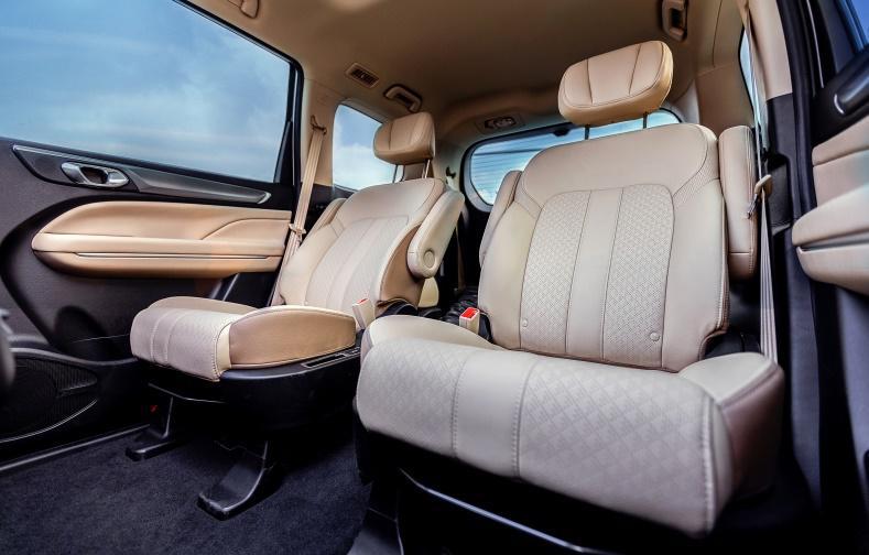 全车采用人体工学全贴合舒适座椅,乘坐时触感更柔软。二排座椅新增外侧扶手并配备4级调节,且滑移行程增加至40mm,乘客能随心调整乘坐姿势,获得舒展自在的最佳体验。座椅还配备双弧面蝶翼式设计头枕,细致呵护乘客的头部和颈部。旅途休息时,小孩和老人侧睡也不怕伤到脖颈,享受极致的贴心呵护,酣睡更香甜。同时,二排通道宽达170mm,不管是小孩或长辈都能轻松进出二、三排。