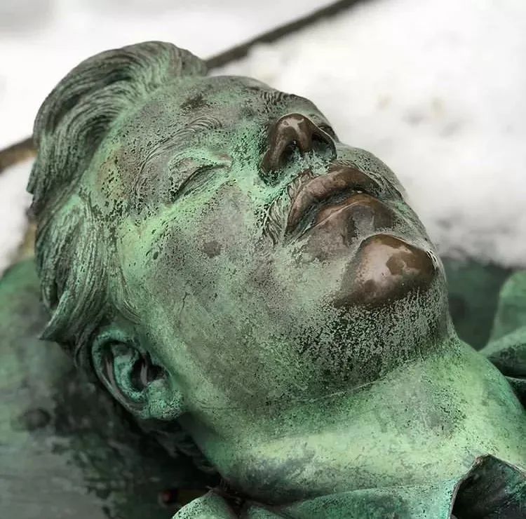 朱尔斯·达鲁为诺瓦尔设计的雕塑,穿着一身正装,代表即便死去,他也无比端正体面。