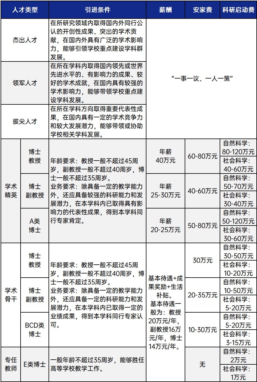 说明:学校为引进人才办理事业编制;解决学术精英及以上人才配偶工作。