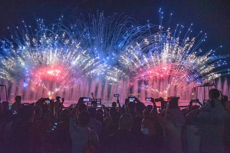 古镇每天一场全新的焰火主题盛宴。今年“五一”的古镇焰火造型比去年的更具变化,彩虹、笑脸、爱心、花树、流星瀑布等造型惊喜绽放,焰火范围宽达120米,高水准的星空水秀配合焰火同时盛放。美景层叠错落,与流光溢彩的古镇夜景交相辉映,千发焰火冲上高空,映出古镇盛世繁华。还有绝美千年非遗绝技“火龙钢花”,高达1500℃的铁水流星在人眼前散落,让游客感受到“手可摘星辰”的璀璨和震撼。