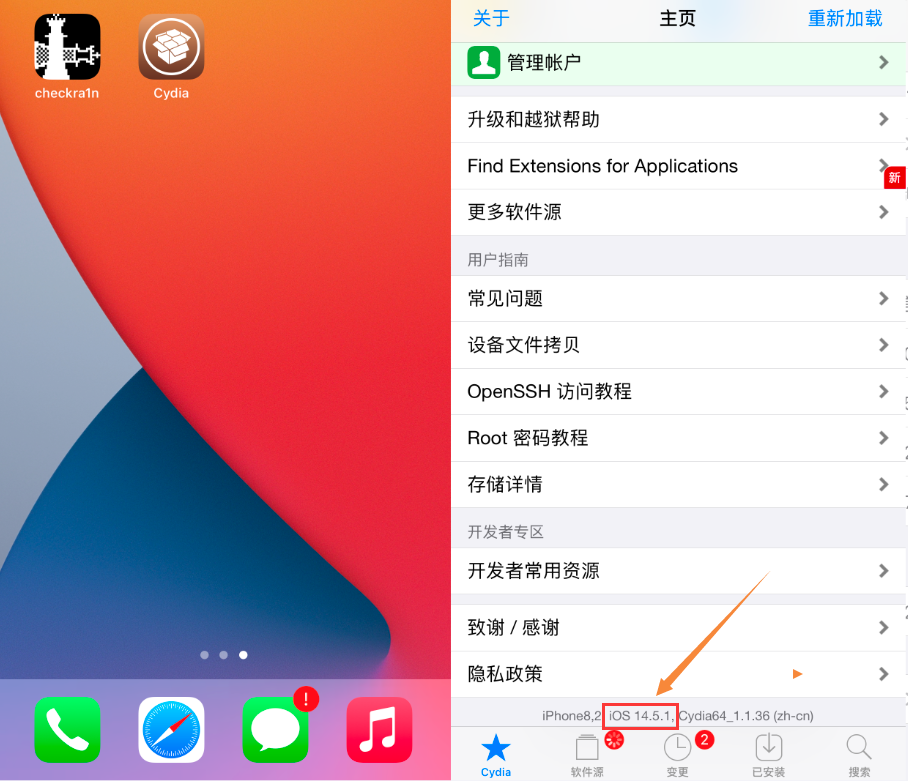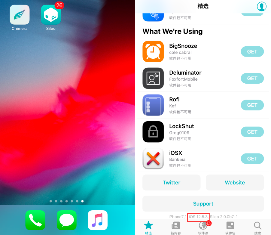 管它呢!反正能为 iOS 12.5.3 系统越狱就行,但是成功率较低,我足足怼了10多次才成功出现sileo越狱商店。