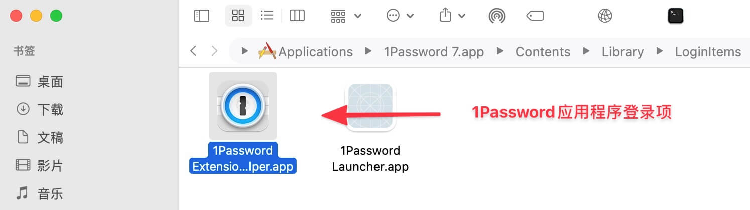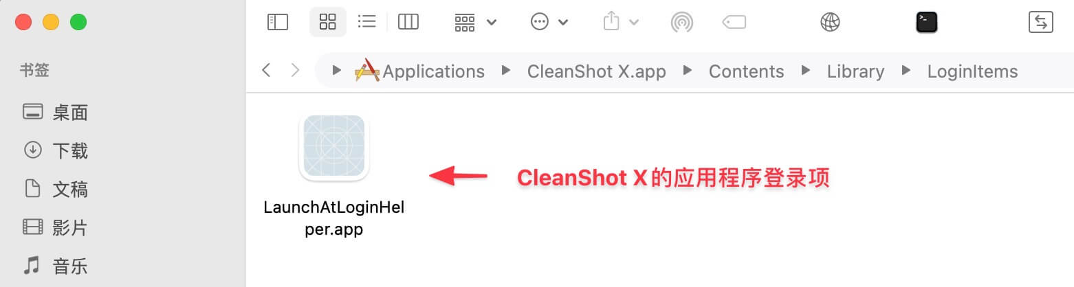 不过你会发现,有一些应用设置开机自启动却没有在 CleanMyMac X 中看到,例如 1Password、CleanShot X 等,这些项目自启动无法在系统设置中进行管理,只能通过应用本身菜单中设置,并且多数仅提供菜单栏常驻的辅助功能,这类启动文件只保存在应用程序文件夹的Contents/Library/LoginItems路径下,例如 1Password 的 1Password Extension Helper、CleanShot X 的 LaunchAtLoginHelper。