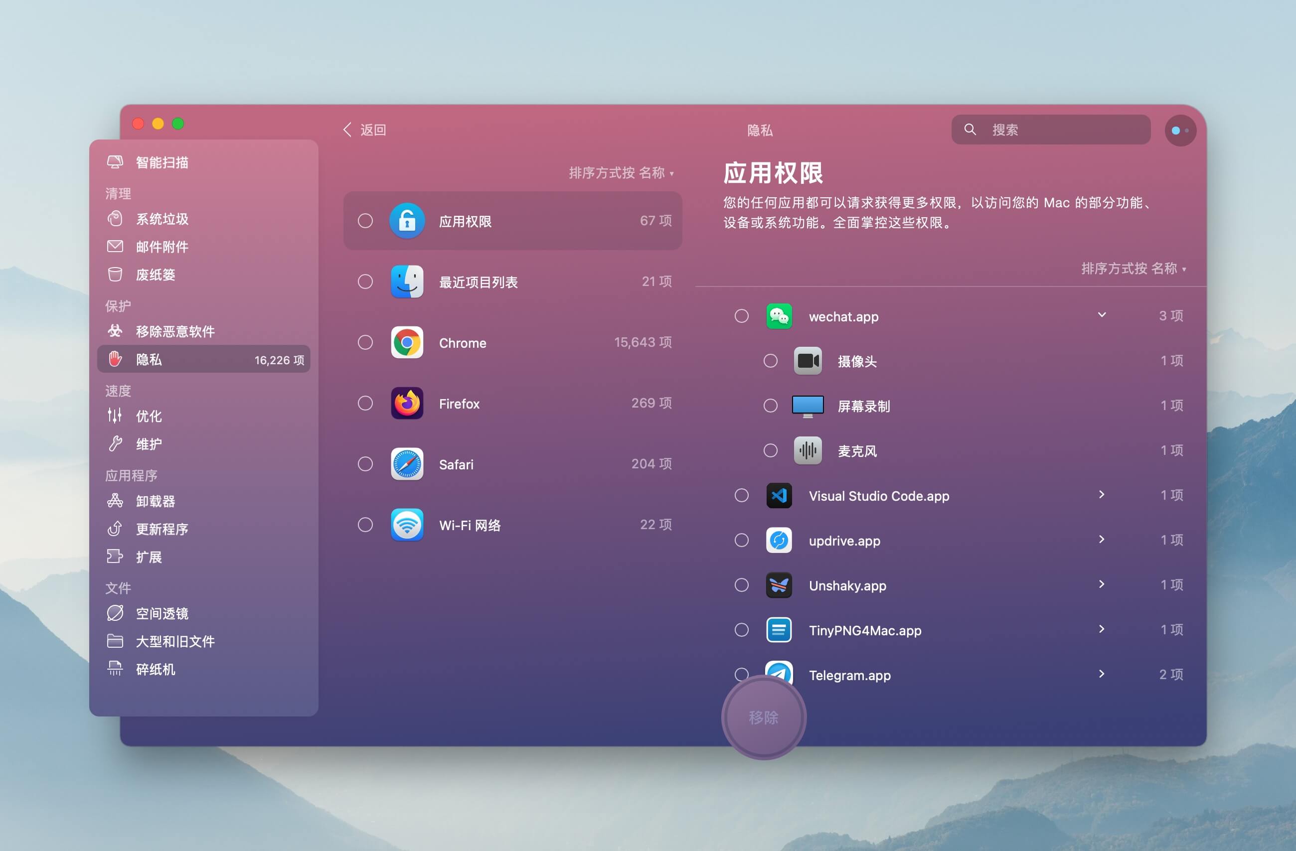 最好的保密方式就是让它消失。CleanMyMac X 有专门针对 macOS 的隐私信息清理功能,也包括对系统敏感权限的管理。