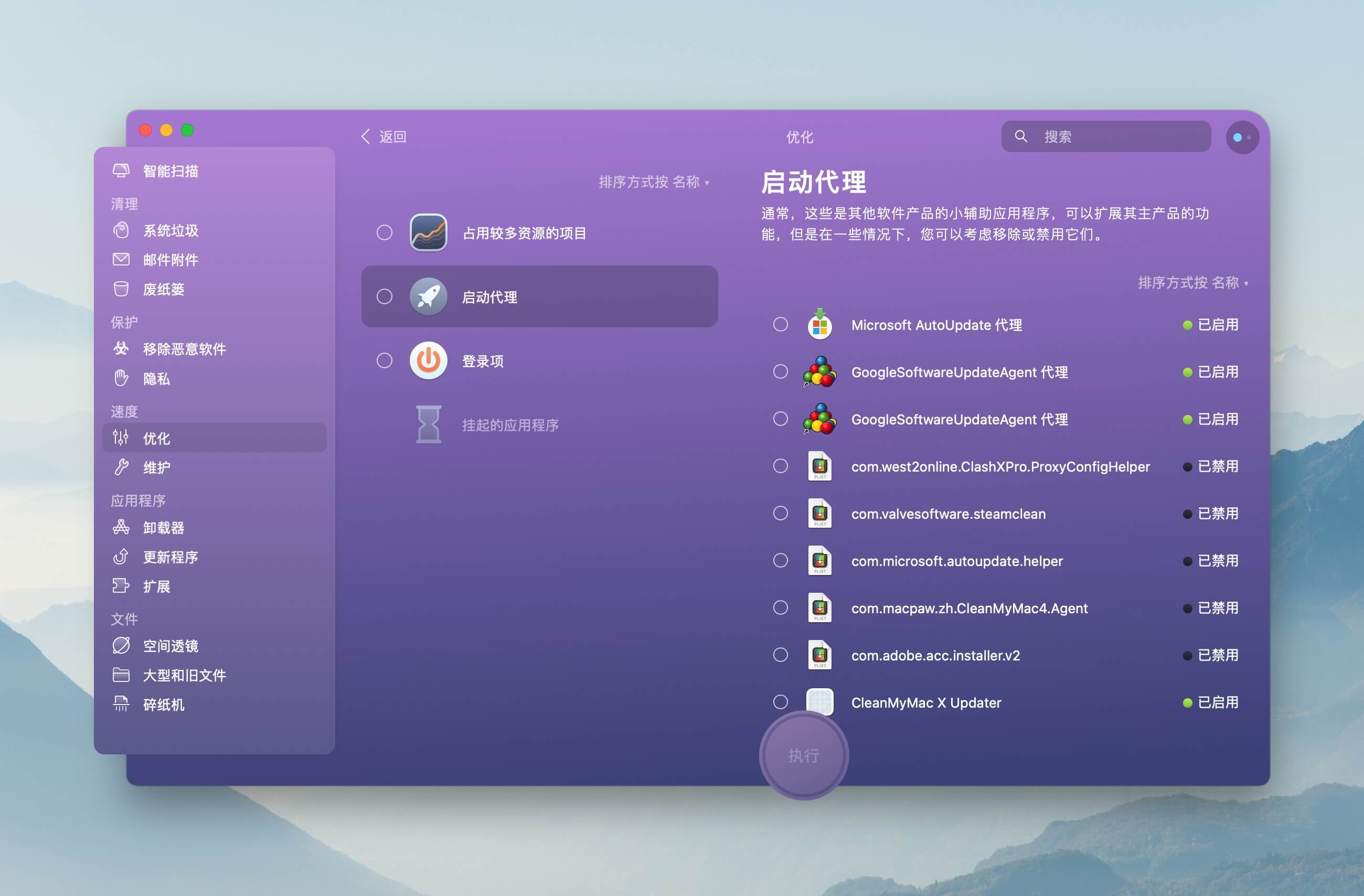 支持启动代理的应用大多会在系统资源库特定位置(LaunchAgents 或 LaunchDaemons 文件夹)生成配置文件,通过 CleanMyMac X 可以禁用或者直接移除启动代理项。