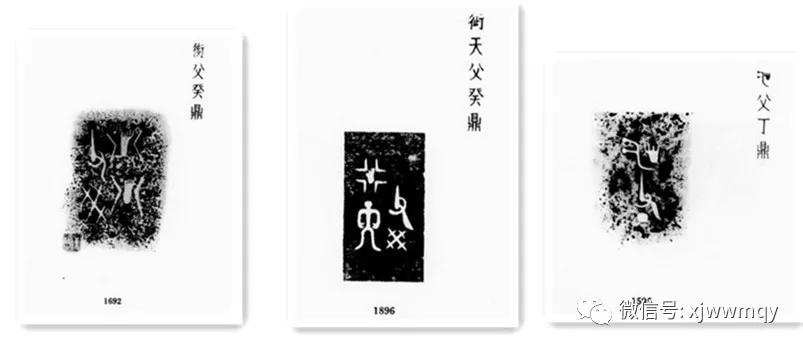 这三个商代青铜鼎铭文上,都有赤脚印,有的是一个有的是两个,都是祖先之“先”的不同写法。