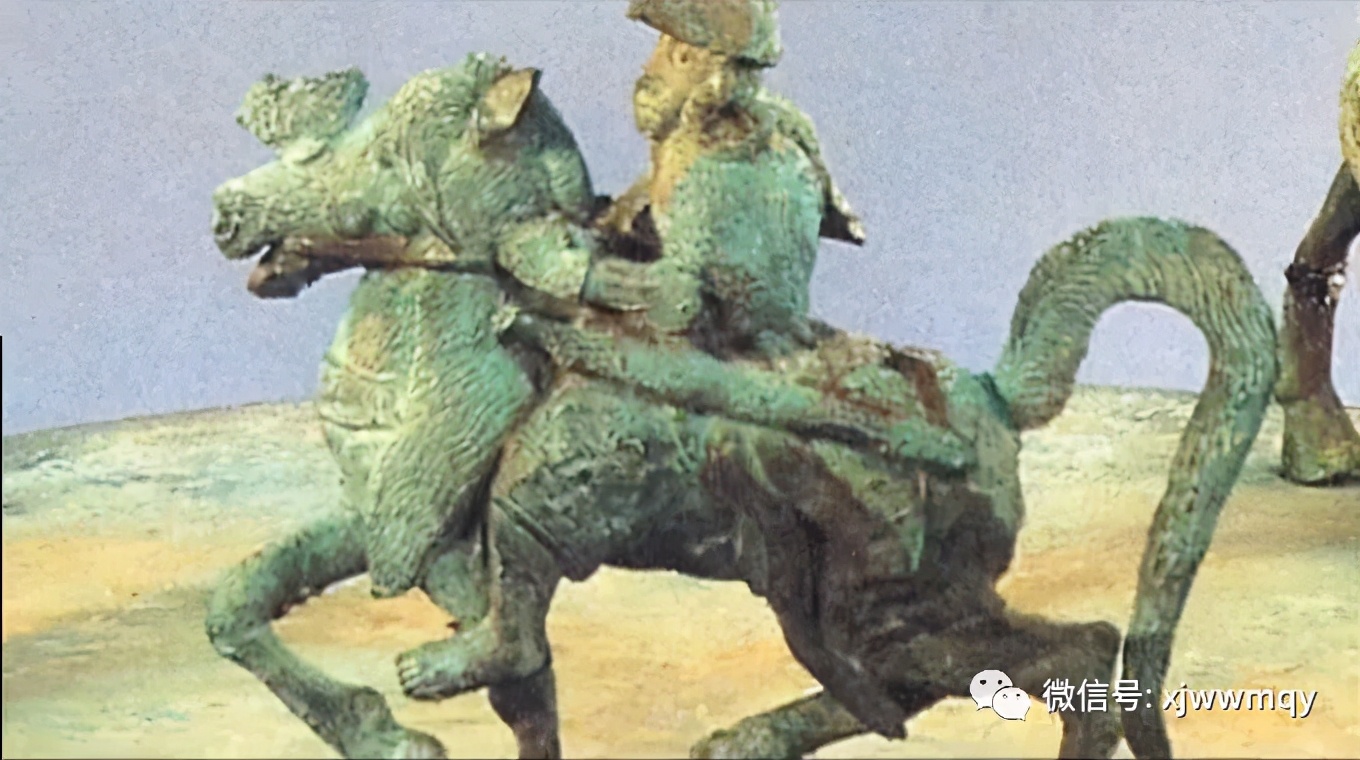 这个骑马神人长着猴的脸,马头上装饰着“恰如”,马的尾巴如猕猴般弓起,是猴马,神人全身披甲,但脚是没有鞋子的。