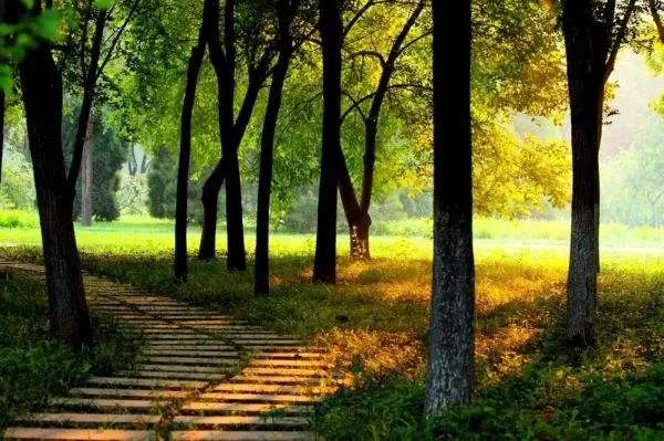 走在林荫密布的小路上,