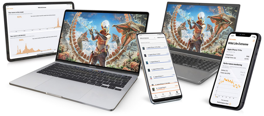 3DMark Wild Life Extreme是一款跨平台的基准测试,可用于测试最新的Windows笔记本、采用Windows 10 Arm的Always Connected PC、采用M1芯片的苹果Mac电脑以及下一代智能手机和平板电脑的图形性能。它在Android和Windows采用Vulkan API,在iOS和Mac上则采用Metal,在Windows 10 Arm上则采用DirectX12,玩家可以跨平台和跨API对比得分。