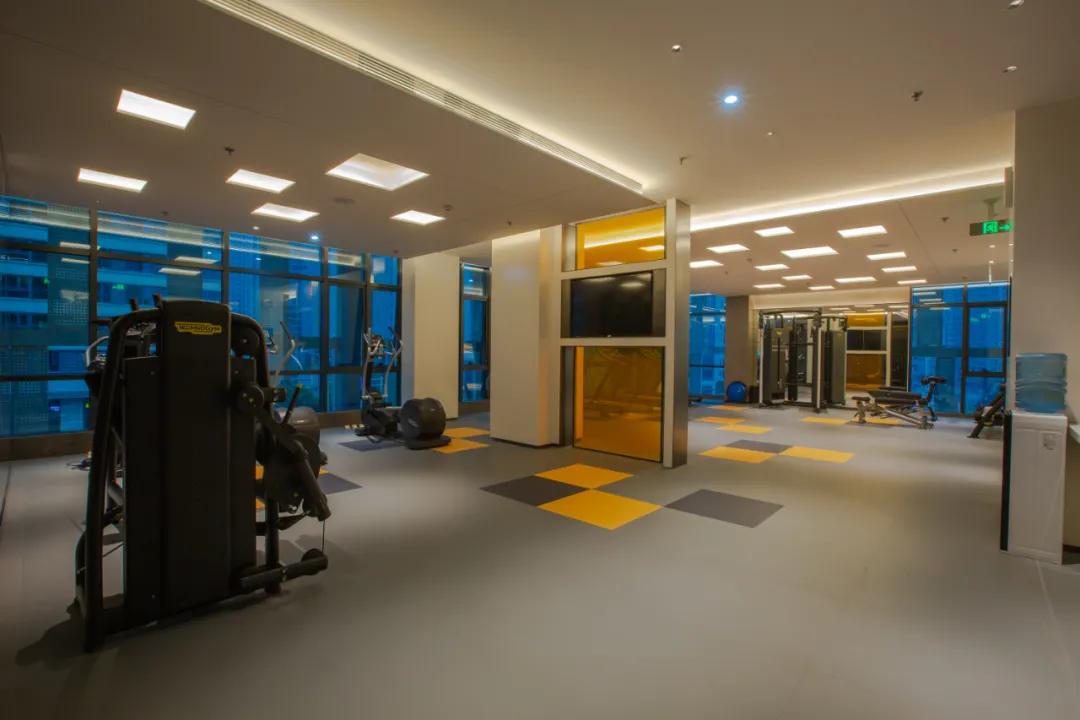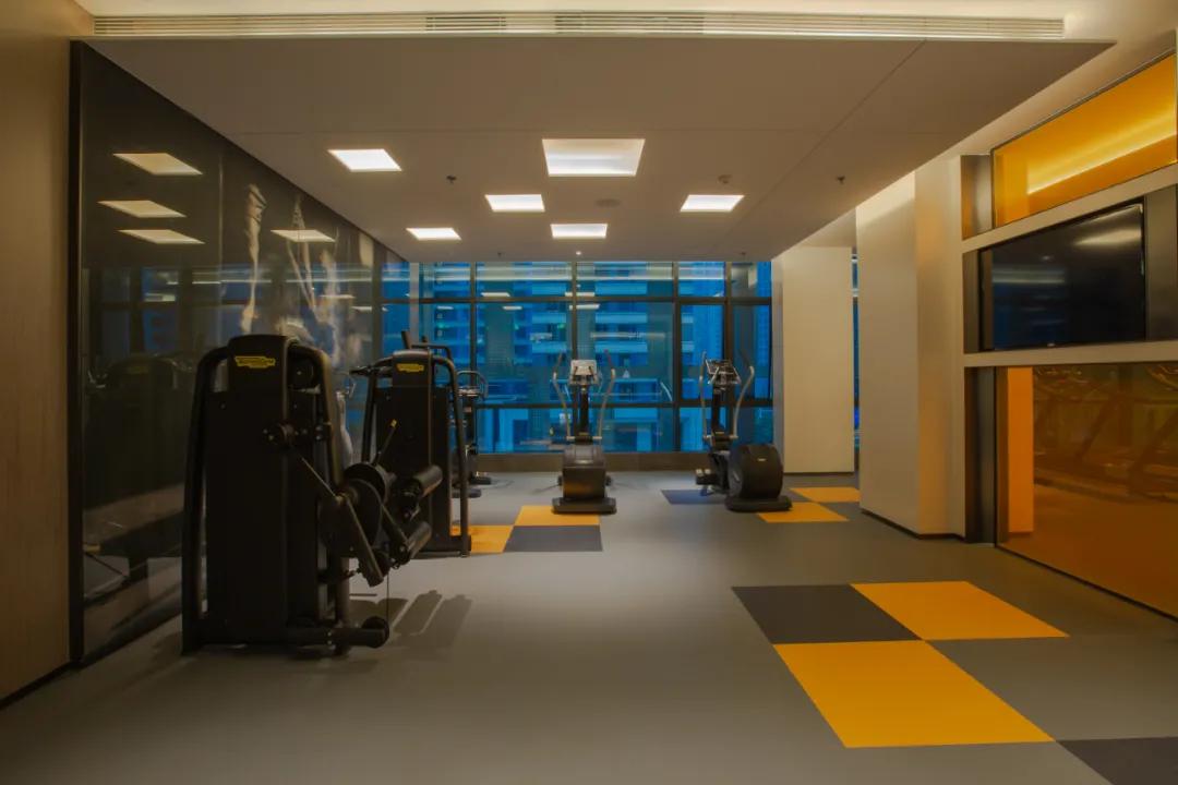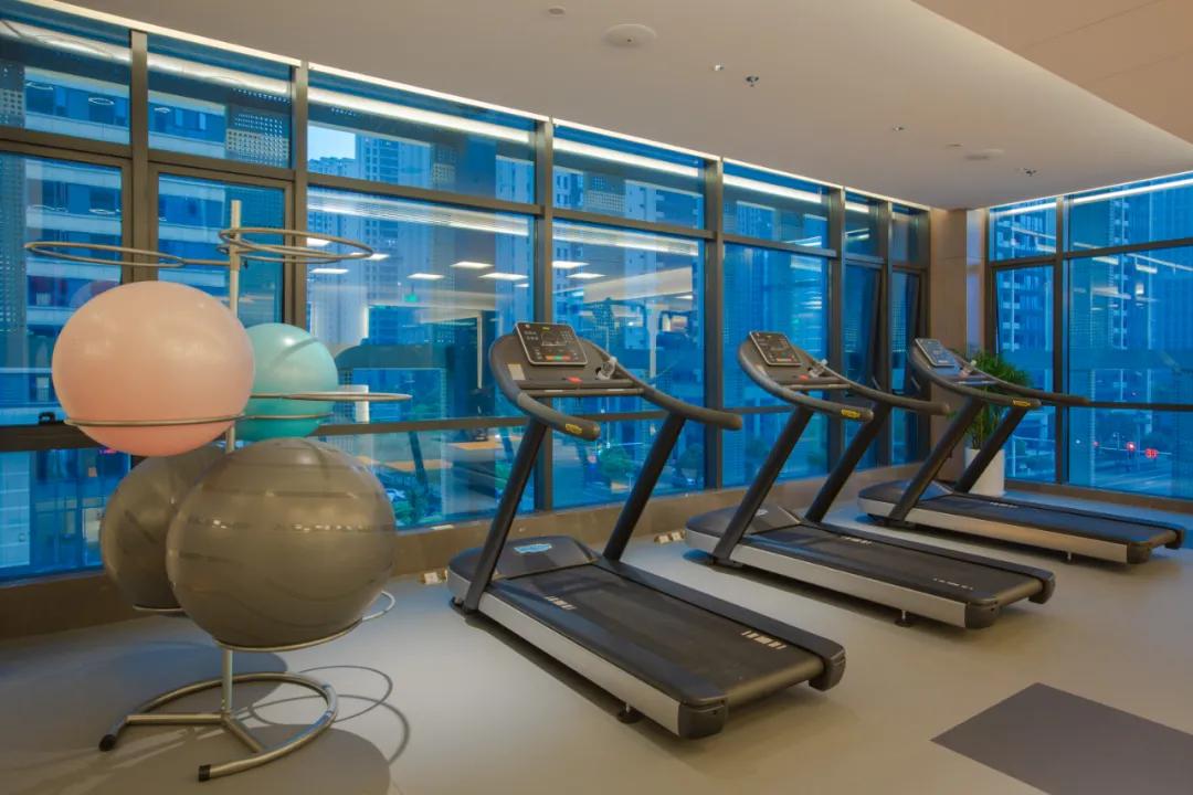入住公寓的客人可以通过房卡刷卡进入三楼的健身房,健身器材都来自全球知名品牌—泰诺健。宾客可以在落地窗边进行跑步,健身锻炼,还能欣赏窗外的美景。