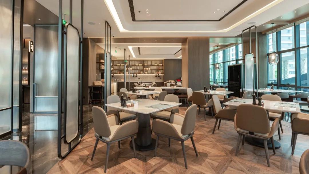 餐厅还设有露台用餐区域,赶上好天气,宾客可在露台上用餐,在静谧舒适的用餐环境中享受视觉和味觉的双重美妙体验。