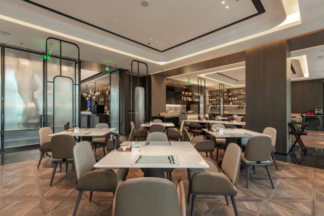 穿过大堂吧即可抵达怡然居餐厅,餐厅采用大落地窗设计,自然光充足,宾客在享受美食的同时还可以将梅溪湖景色收入眼前。餐厅的屏风设计灵感来源于浏阳夏布,百纳时光,看似淡然如风,却丝丝扣入心弦。