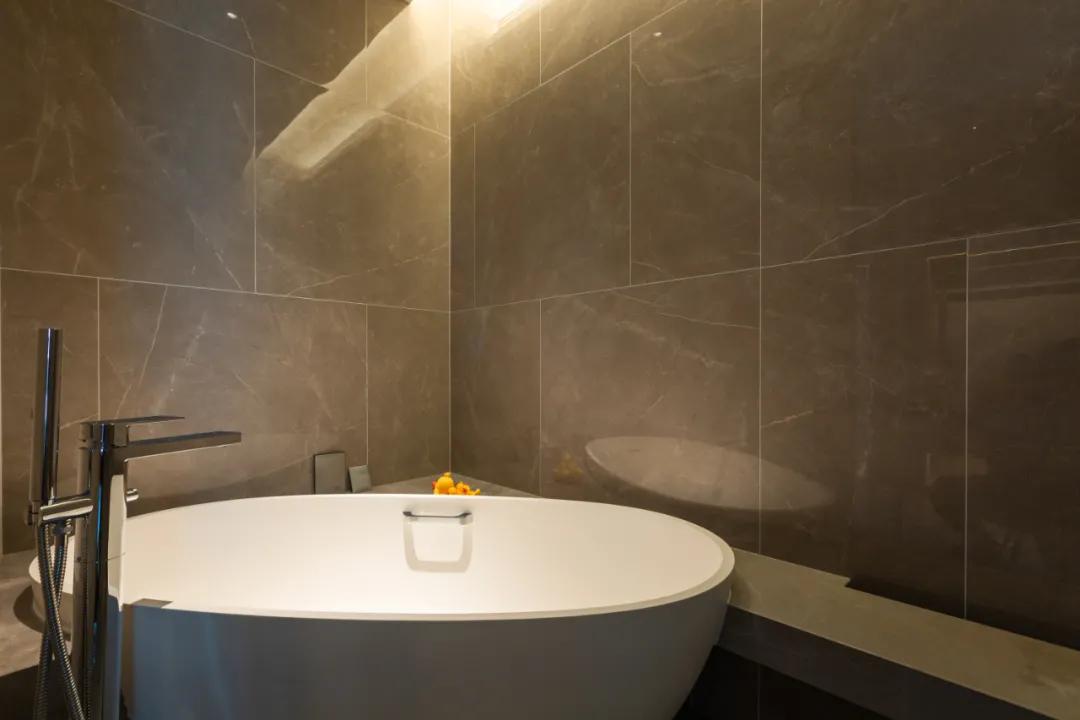 三居室也是配备有两间卧室和一间书房,当然超大的会客厅将是高端客人或者明星比较喜欢的房间了,浴缸配备在宽大的落地窗前面。