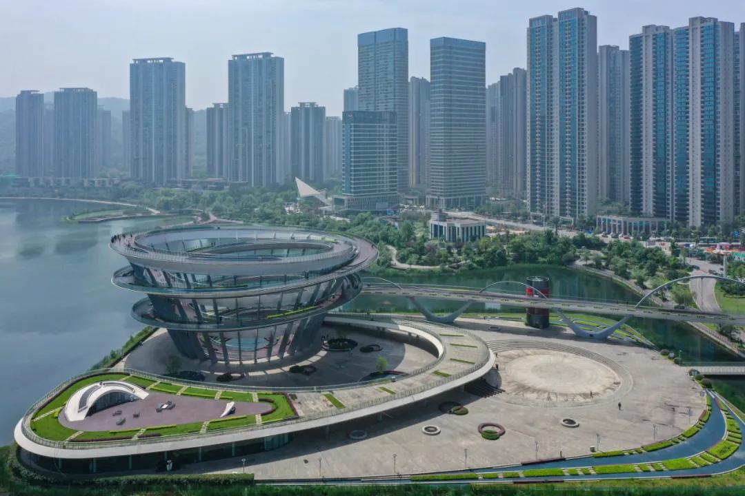 从公寓走路几分钟即可抵达位于梅溪湖西岸的城市岛、这是城市中轴线东端头的一座人工岛屿,如今免费为市民开放,岛上的标志性建筑物是一个双螺旋观景平台。爬上观景平台,眼前呈现的是高楼林立,路网交会,湖光倒影,梅溪湖公园绿意盎然。