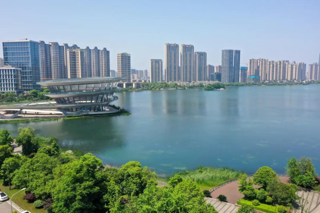 这次赶上了好天气,航拍了一次梅溪湖,碧绿湖水,倒映新城。在这样绿水青山环绕的环境里,不管是商务出差还休闲度假,都非常愉悦。