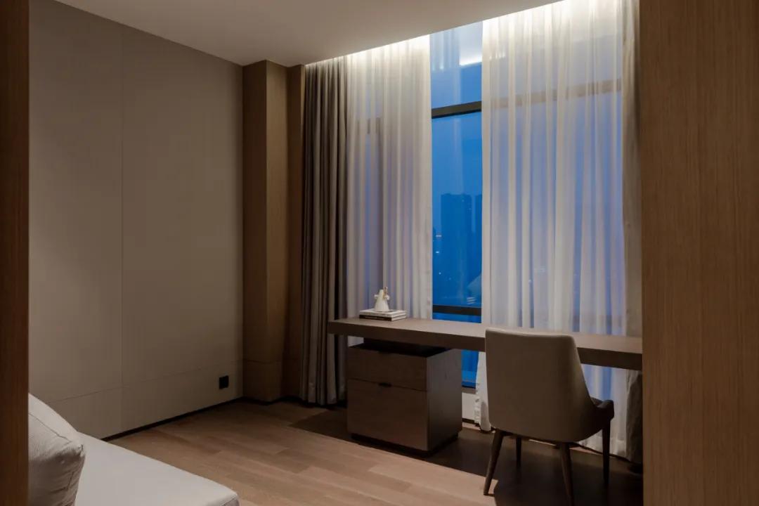 公寓所有客房的设计处处都在体现湘绣的“韵律”感和“素净”感,尤其是一些小的艺术品摆件、花瓶和挂在墙上的壁画,壁画的材质是烤漆的,整个画面都体现的是随性自然、张弛有度的意境美。