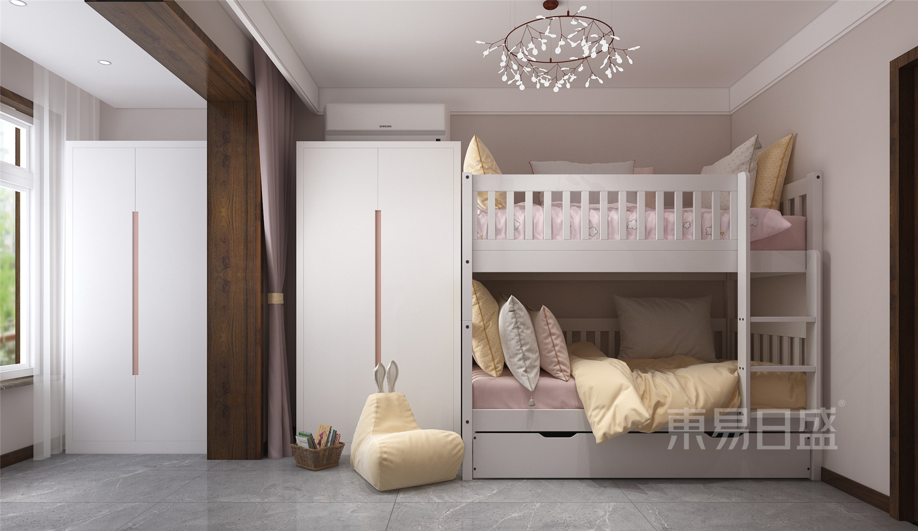 女儿房以粉色为主,营造出舒缓柔和的空间氛围。